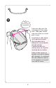 22 Use slide adjuster at shoulder and waist for further adjustment. Repeat on other side. Utilisez le régulateur coulissant à l'épaule et à la taille pour un ajustement plus précis. Répétez de l'autre côté. Use el ajuste deslizable en el hombro y la cintura para hacer ajustes adicionales. Repita el proceso del otro lado. 23 When changing harness strap slots, MAKE SURE harness straps are going through same slots in seat pad.