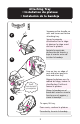 Attaching Tray • Installation du plateau • Instalación de la bandeja Squeeze recline handle on seat and lower seat before attaching tray. 7 Serrer la poignée d’inclinaison sur le siège et abaisser le siège avant de fixer le plateau. Apriete la manija de reclinación del asiento y baje el asiento antes de instalar la bandeja. 8 Line up tray on edge of seat and insert peg into hole and close tray. Aligner le plateau avec le rebord du siège, insérer la cheville dans l’orifice et fermer le plateau.