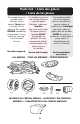 2X 2X 2X 7 Place wheel and washer on axle. Placez la roue et la rondelle sur l’essieu. Ponga la rueda y la arandela en el eje. 8 Push straight side of pin through axle hole. Pin will separate around the axle. Curved end of pin MUST face up as shown. Pousser le côté droit de la tige dans l’orifice de l’essieu. La tige va se séparer autour de l’essieu. La partie recourbée de la tige DOIT pointer vers le haut, tel qu’illustré. Empuje el lado recto de la clavija por el agujero del eje.