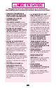 Cuidado y mantenimiento s NO LAVE EL ASIENTO A MÁQUINA. Solamente debe limpiarse con un jabón suave, teniendo en cuenta que no se empape la tela. NO USE BLANQUEADOR. s EL ASIENTO REMOVIBLE (si así está equipado) puede lavarse a máquina en agua fria en el ciclo delicado y secarse al aire. NO USE BLANQUEADOR. s PARA LIMPIAR EL ARMAZÓN DEL COCHECITO, usar solamente jabón de uso doméstico y agua tibia. NO USE CLORO o detergente.