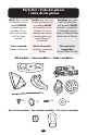 &RONT 7HEELS s ,ES ROUES AVANT s ,AS RUEDAS DELANTERAS 2X 7 Check that wheels are securely attached by pulling on wheel assemblies !SSUREZ VOUS que les roues sont attachées solidement en tirant sur les assemblages de roue. SNAP! ENCLENCHEZ! ¡RUIDO! Verifique que las ruedas estén bien contactadas, tirando de los montajes de las ruedas.