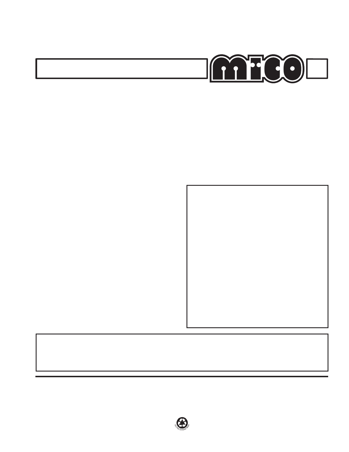 MICO is a registered trademark of MICO, Incorporated. MICO is registered in the U.S. Patent and Trademark Office as well as in Canada, Great Britain, South Korea, and Australia.