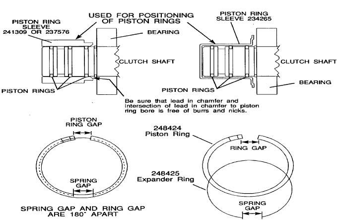 piston rings when installing the clutch shaft in the front transmission cover or converter housing.