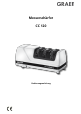 Messerschärfer CC 120 Grundlegende Sicherheitshinweise D Beachten Sie für einen sicheren Umgang mit dem Gerät die folgenden Sicherheitshinweise: ■■ Kontrollieren Sie das Gerät vor der Verwendung auf äu- ßere sichtbare Schäden am Gehäuse, dem Anschlusskabel und -stecker. Nehmen Sie ein beschädigtes Gerät nicht in Betrieb. ■■ Reparaturen dürfen nur von einem Fachmann oder vom Graef-Kundendienst ausgeführt werden. Durch unsachgemäße Reparaturen können erhebliche Gefahren für den Benutzer entstehen.