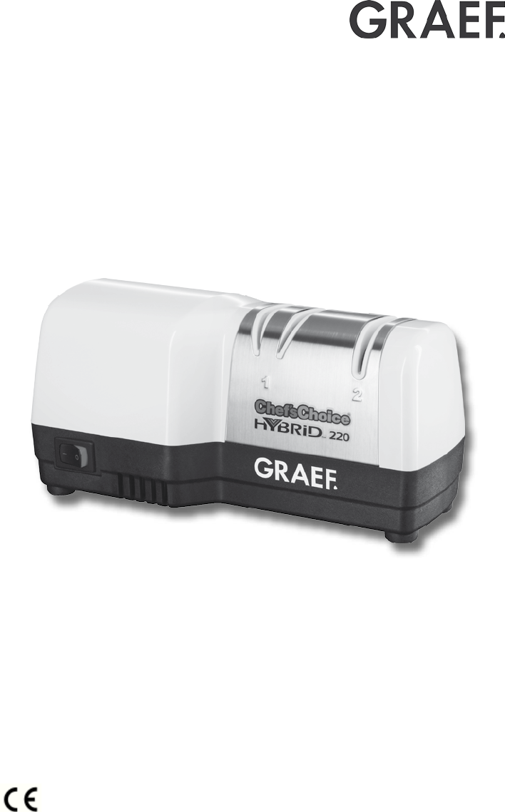 Messerschärfer CC 80 Grundlegende Sicherheitshinweise Beachten Sie für einen sicheren Umgang mit dem Gerät die folgenden Sicherheitshinweise: ■■ Kontrollieren Sie das Gerät vor der Verwendung auf äußere sichtbare Schäden am Gehäuse, dem Anschlusskabel und -stecker. Nehmen Sie ein beschädigtes Gerät nicht in Betrieb. ■■ Reparaturen dürfen nur von ei- nem Fachmann oder vom Graef-Kundendienst ausgeführt werden. Durch unsachgemäße Reparaturen können erhebliche Gefahren für den Benutzer entstehen.