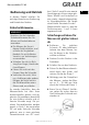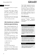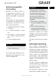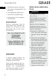 Messerschärfer CC 80 ●● Nichtbeachtung der Anleitung D ●● Nicht bestimmungsgemäßer Ver- wendung ●● Unsachgemäßer Reparaturen ●● Technischer Veränderungen ●● Verwendung nicht zugelasse- ner Ersatzteile Kundendienst Sollte es vorkommen, dass Ihr Graef-Gerät einen Schaden hat, wenden Sie sich bitte an Ihren Fachhändler oder an den GraefKundendienst. Gebr. Graef GmbH & Co. KG Kundendienst Donnerfeld 6 59757 Arnsberg Telefon: 02932-9703 - 6041 Telefax: 02932-9703 - 90 Email: service@graef.