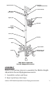 3. Insert lower pole into pole base. 4. Assemble M8 screw, small washer, and large washer as shown on previous page. Install from the bottom through base into pole base. Use 9/16" wrench to tighten. 5. Insert spring into lower pole. 6. Insert upper pole into lower pole. 7. Install height adjustment knob in upper pole. Adjust upper pole to desired height. Turn knob clockwise to tighten. 8. Install basket on upper pole; insert two M4 screws to secure it as shown on previous page.
