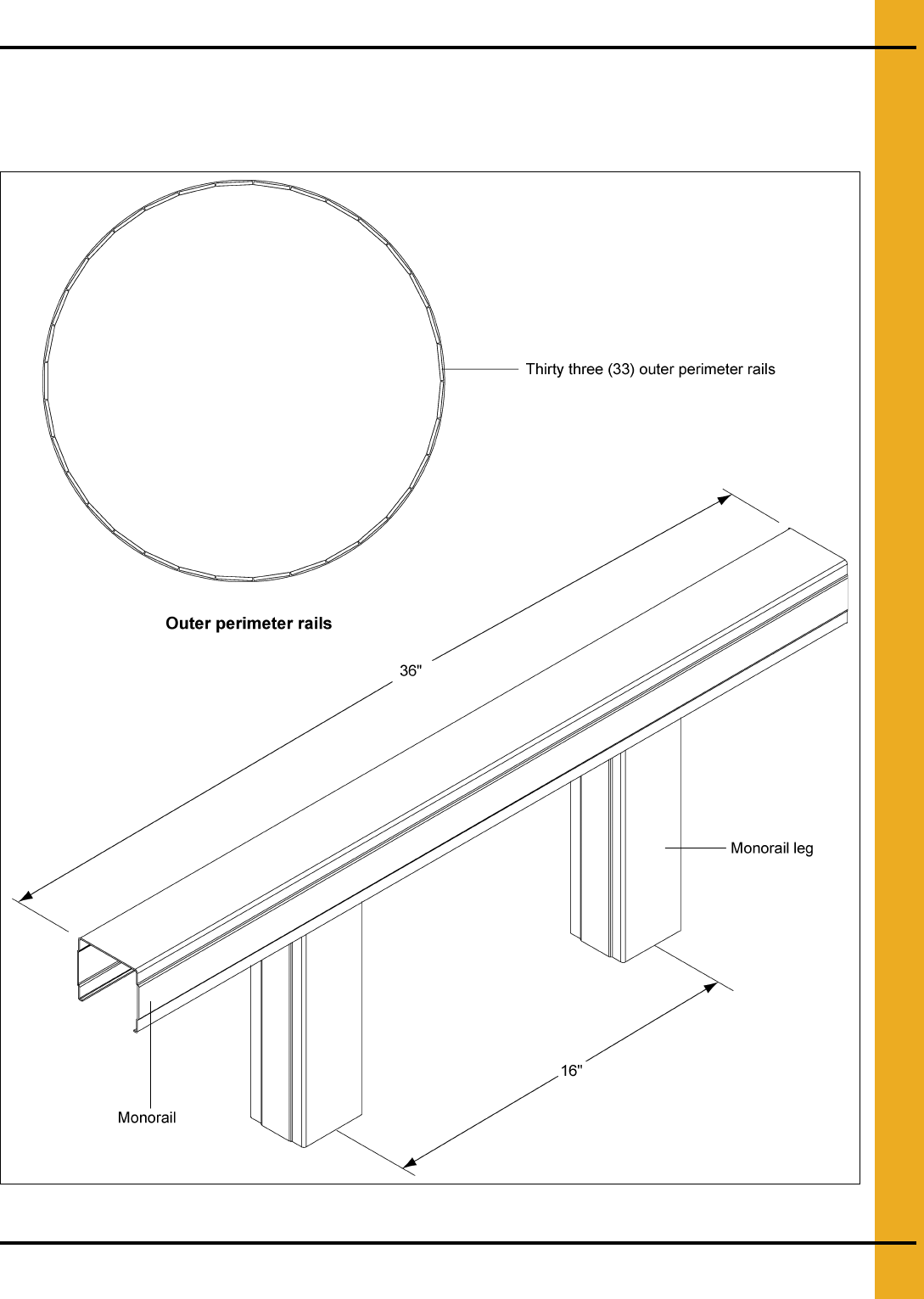 3' Sections of monorail should be placed around the perimeter of the bin. Monorail legs for perimeter rails