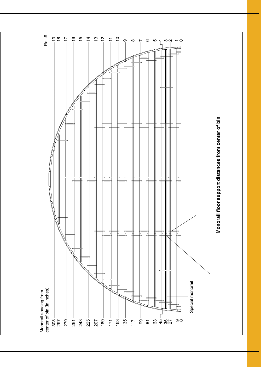NOTE: This depicts monorail spacings only. Leg spacing is dependant