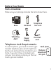 Before You Begin Parts Checklist Make sure your package includes the items shown here. Base Vibrating Alert Handset Telephone line cord Power Supply Handset cord Telephone Jack Requirements Wall plate To use this phone, you need an RJ11C type modular telephone jack, which might look like the one pictured here, installed in your Modular telephone home. If you don’t have a modular jack, line jack call your local phone company to find out how to get one installed.