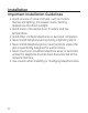 Installation Important Installation Guidelines • Avoid sources of noise and heat, such as motors, fluorescent lighting, microwave ovens, heating appliances and direct sunlight. • Avoid areas of excessive dust, moisture and low temperature. • Avoid other cordless telephones or personal computers. • Never install telephone wiring during a lightning storm. • Never install telephone jacks in wet locations unless the jack is specifically designed for wet locations.