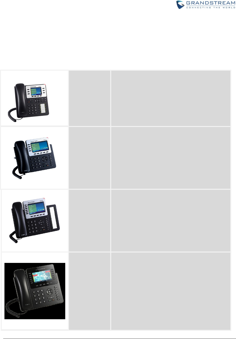 Table 1: GXP2130/GXP2140/GXP2160/GXP2170 FEATURES IN A GLANCE