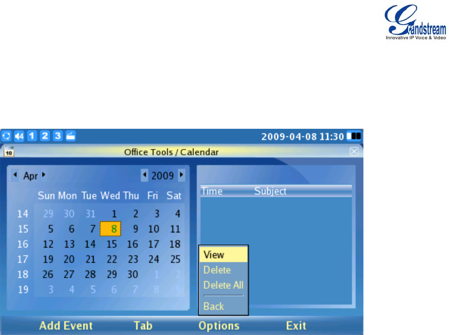 where users may view, delete or delete all events. Press F4 to exit the calendar.