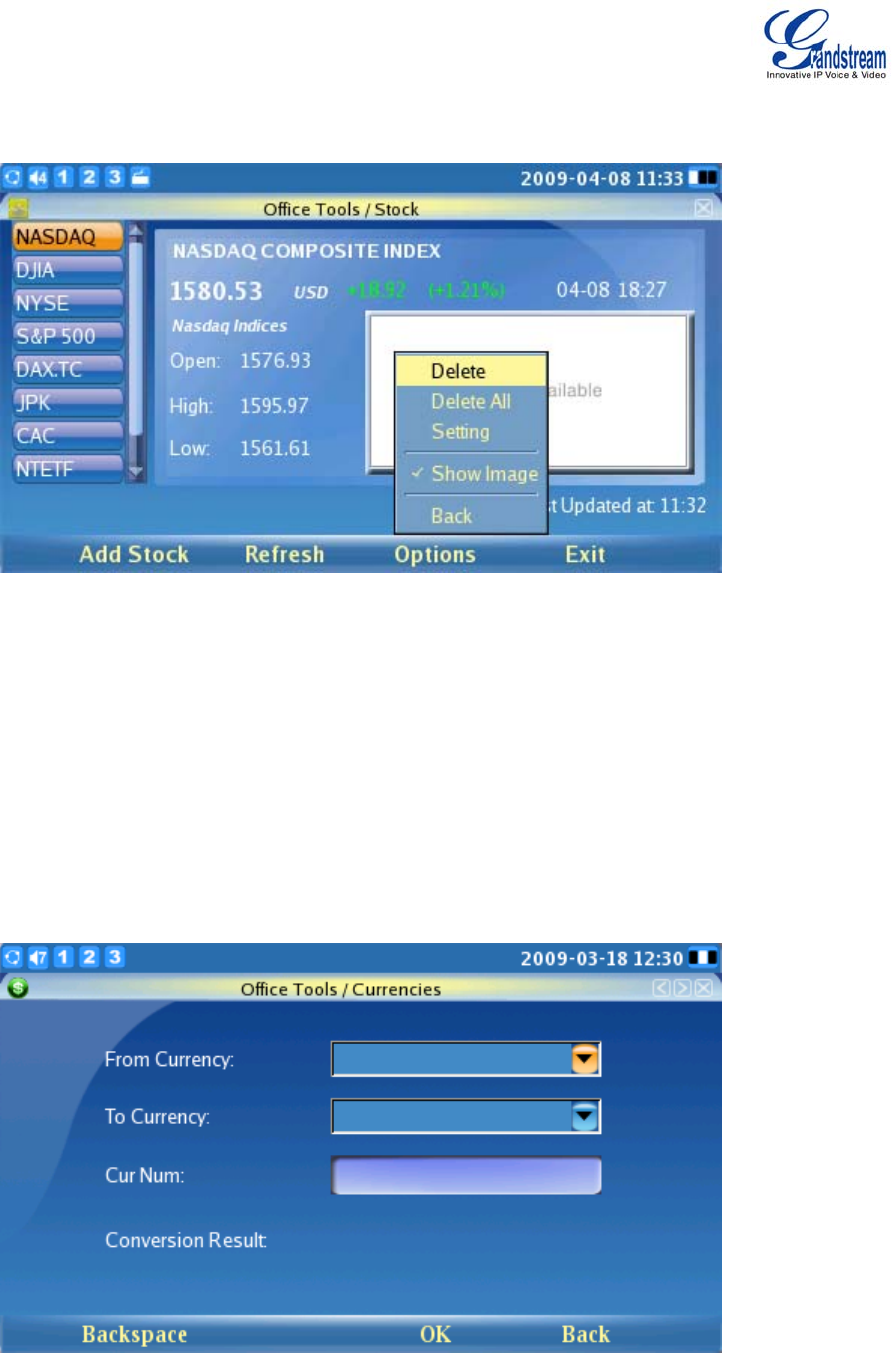 The GXV3140 includes a Stock Market monitoring application that conveniently retrieves current