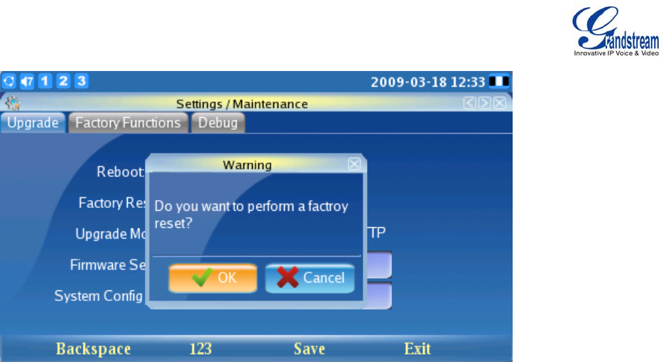 Step 5: Press the OK button again to select “OK”. The phone will reboot and perform a factory reset.