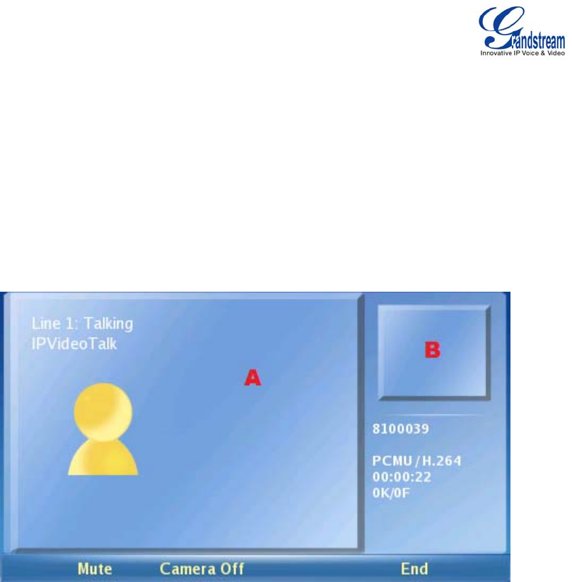 As shown in the figure above, area A shows the remote video and area B shows the local video.
