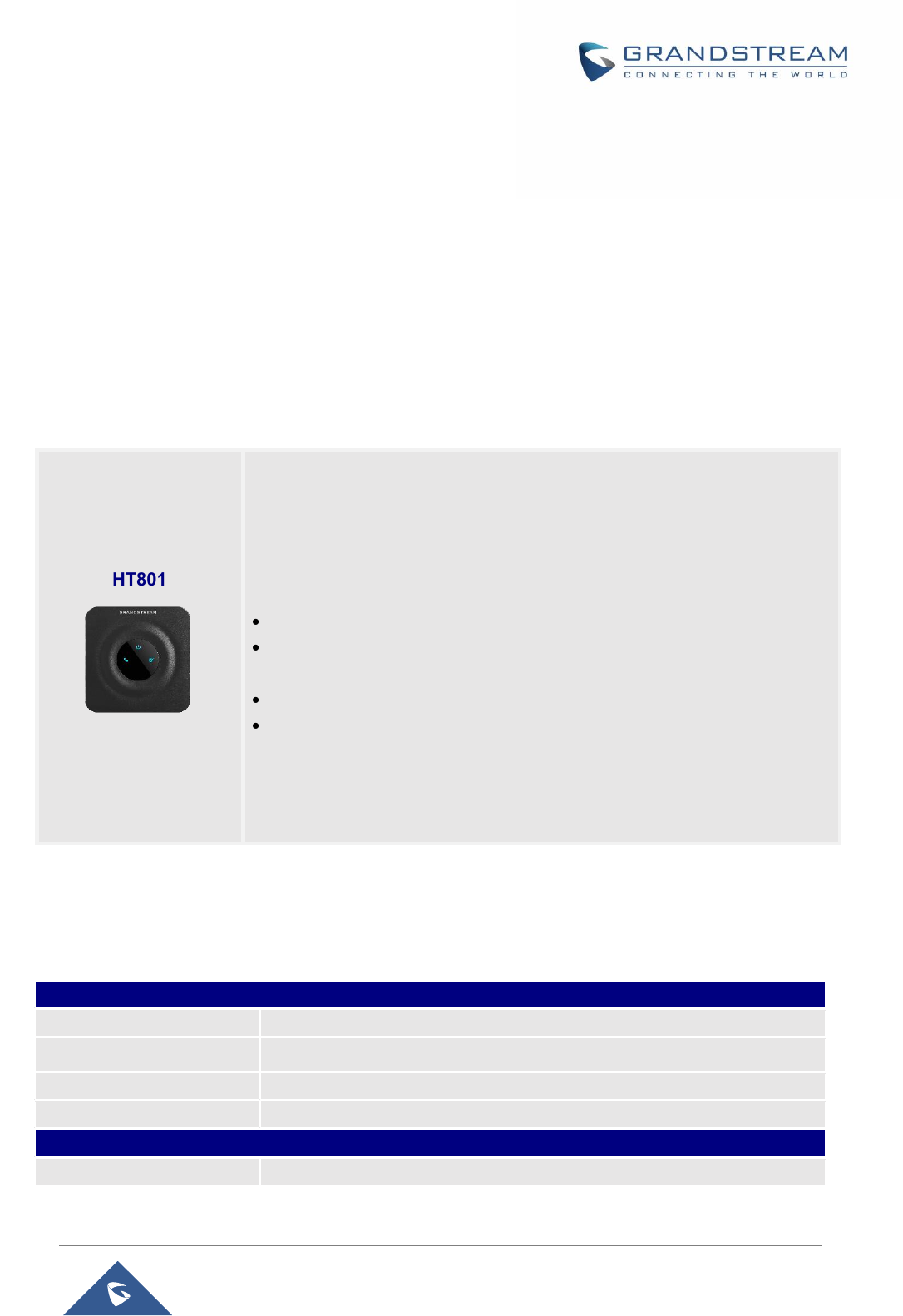 The HT801 is a 1 port analog telephone adapter (ATA) that allows users to create a high-quality and
