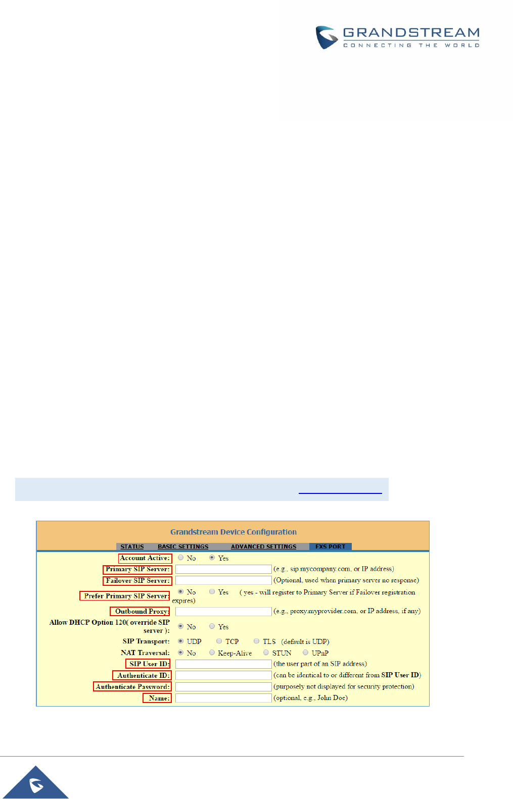 b. Primary SIP Server field with your SIP server IP address or FQDN.