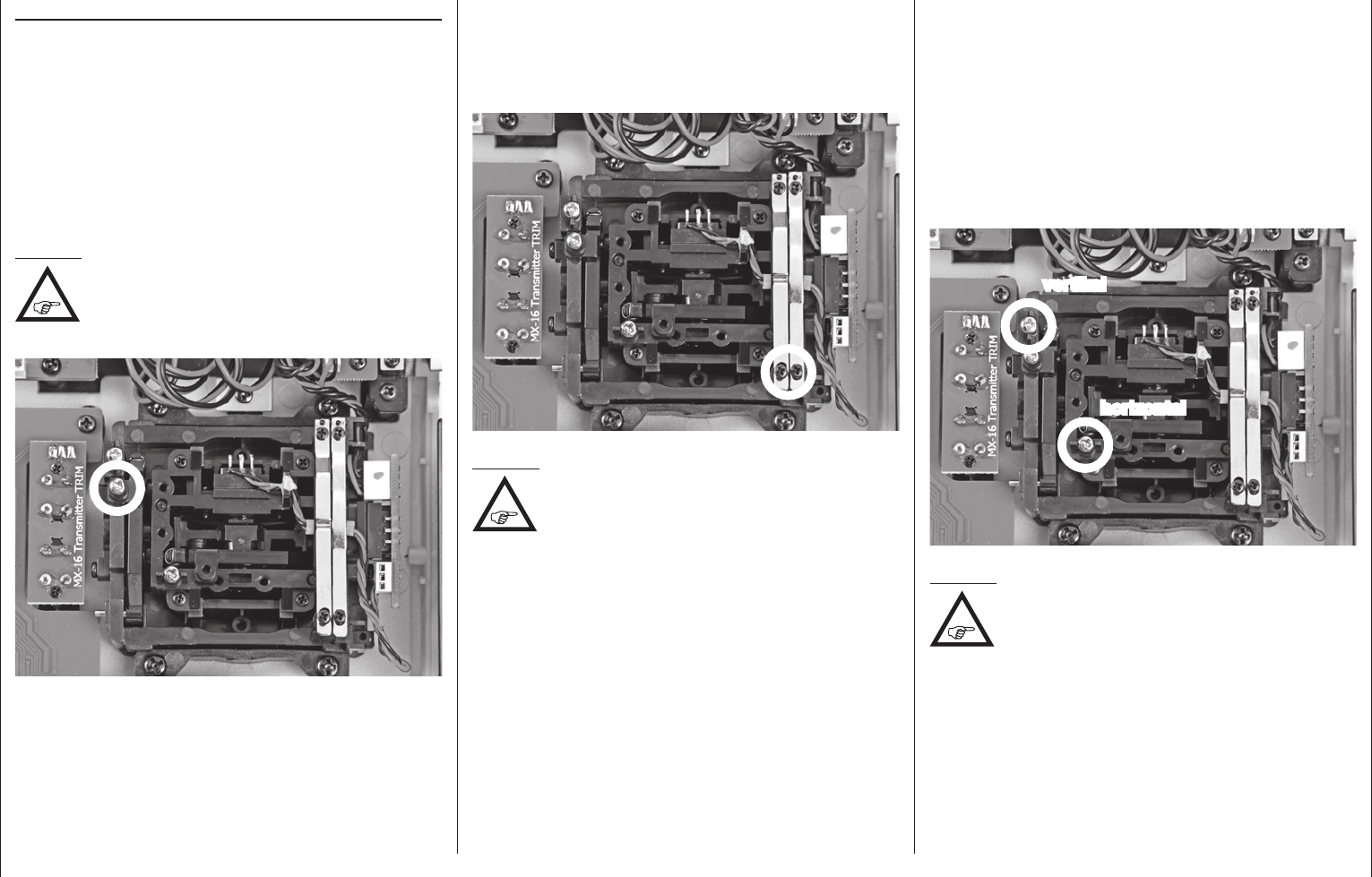 fende Steuerknüppel von Anschlag bis Anschlag frei