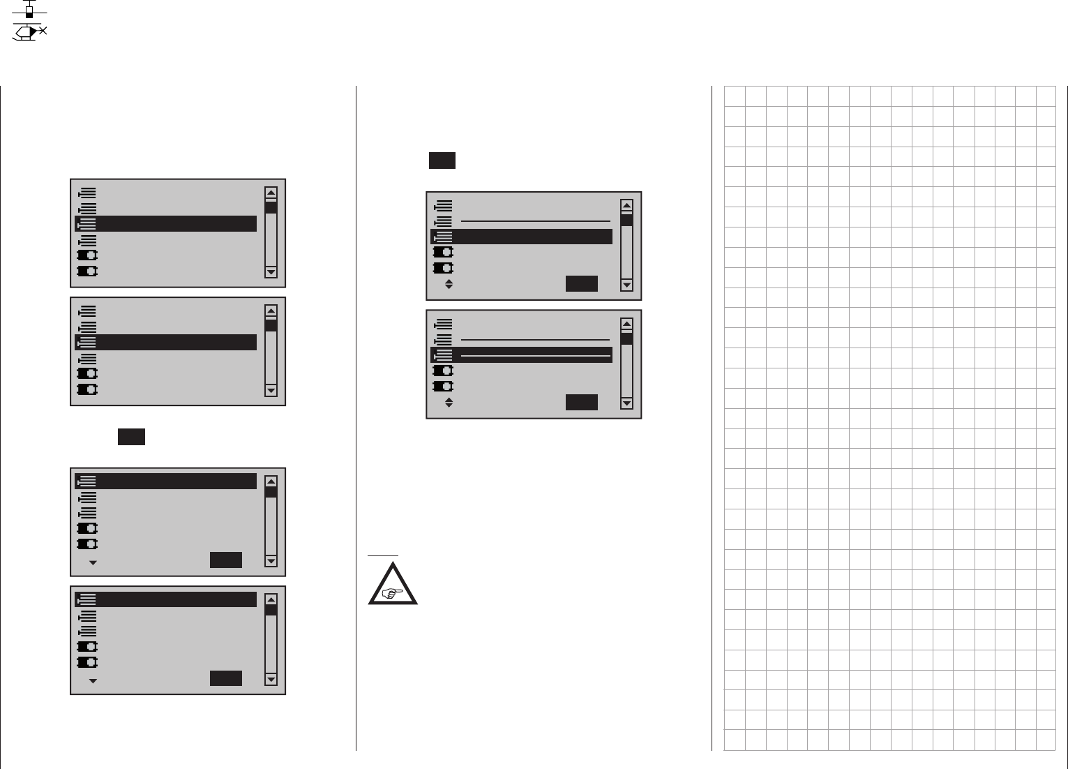 Modellspeicher nicht (mehr) benötigten Menüpunkte