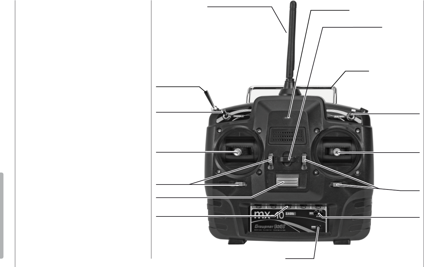 Sur le dessus de l’émetteur mx-10 Hott se trouve un