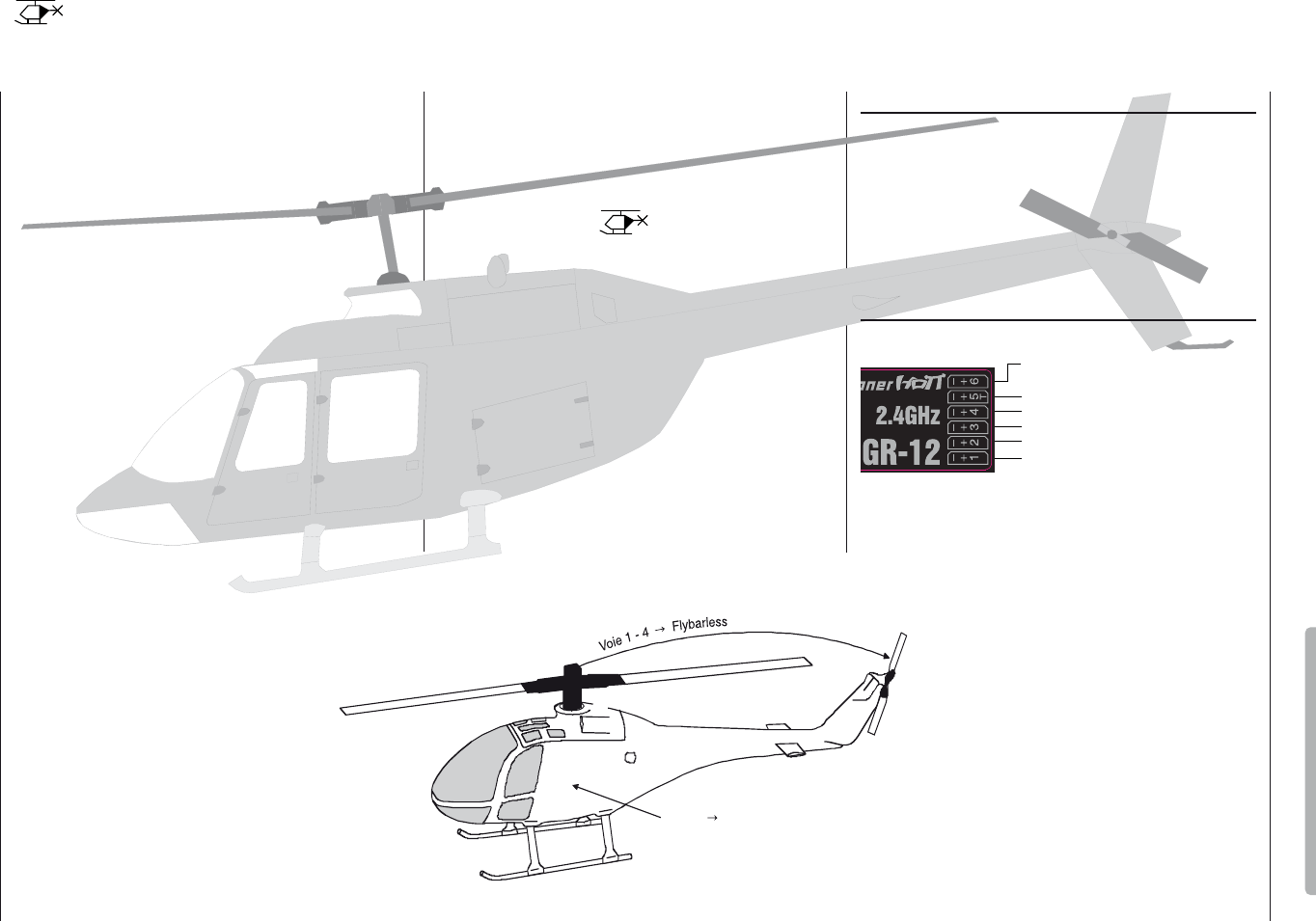 hélicoptères équipés d‘un système „Flybarless“, par ex.