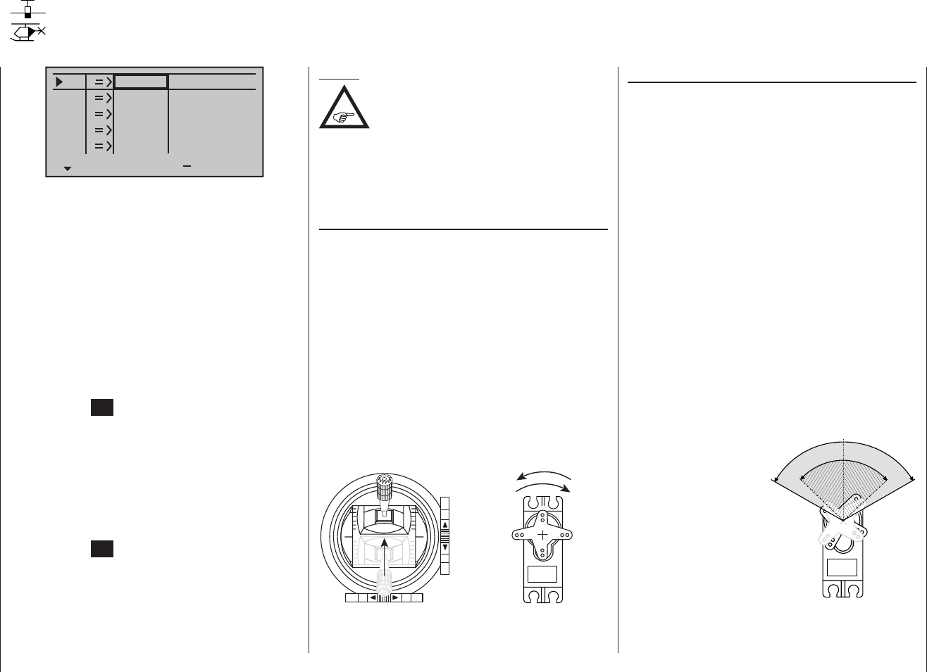 „=>“ und „<=“. Die Servodrehrichtung ist vor dem Ein-