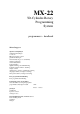 MX-22 3D-Cylinder-Rotary Programming System programmeer – handboek inhoudsopgave algemene aanwijzingen veiligheidsaanwijzingen voorwoord MX-22 Computer-systeem gebruiksaanwijzingen zenderbeschrijving (voor-/ achterkant) display-beschrijving eerste inbedrijfname begripsdefinities digitale trimming / afschakeltrimming bediening “Data Terminal”, draaiknop display-contrast stuurelement-, (externe-) schakelaartoewijzing vliegtuigmodellen (ontvangertoewijzing) helicoptermodellen (ontvangertoewijzing) korte progr
