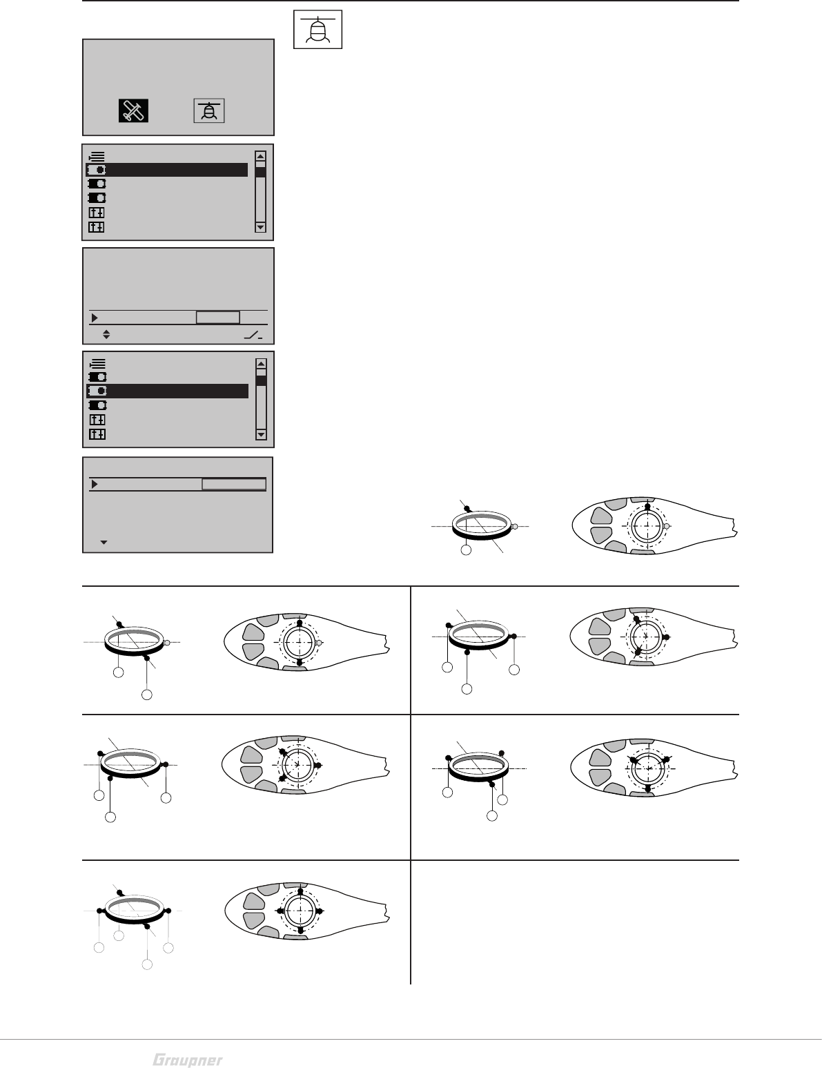 appropriate swash plate of the helicopter. Possible settings: