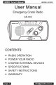 Err EEA User Manual Emergency Crank Radio GR-002 CONTENTS: RAID) OPERATION POWER YOUR RADII CHARGE EXTERNAL DEVICES SPECIFICATIONS SAFETY INSTRUCTIONS * WARRANTY “so 8»