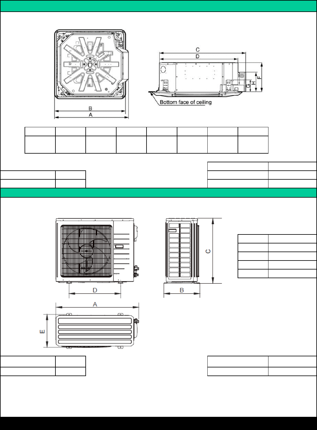 INDOOR UNIT DIMENSIONS & WEIGHTS