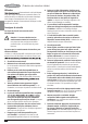 FINNISH ( Originele instructies ) d. Jos akkua käsitellään väärin, siitä voi vuotaa nestettä; älä kosketa sitä. Jos kosketat sitä vahingossa, huuhtele se vedellä. Jos nestettä pääsee silmiin, hakeudu lisäksi lääkärin hoitoon. Akusta vuotanut neste voi ärsyttää ihoa ja aiheuttaa palovammoja. 6. Huolto a. Huollata työkone pätevällä huoltomiehellä, joka käyttää ainoastaan asianmukaisia varaosia. Tämä takaa, että sähkötyökalu pysyy turvallisena.