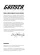 GRETSCH® GUITARS FMIC SPECIALTY SALES 8860 EAST CHAPARRAL ROAD, SUITE 100 SCOTTSDALE, AZ 85250-2618, USA www.gretschguitars.com © 2003 Printed in U.S.A, P/N 991-6026-135 Rev.