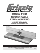 MODEL T1244 ROUTER TABLE EXTENSION WING OWNER'S MANUAL (For models manufactured since 10/17) COPYRIGHT © MARCH, 2018 BY GRIZZLY INDUSTRIAL, INC. WARNING: NO PORTION OF THIS MANUAL MAY BE REPRODUCED IN ANY SHAPE OR FORM WITHOUT THE WRITTEN APPROVAL OF GRIZZLY INDUSTRIAL, INC. #KB19357 PRINTED IN CHINA V1.03.