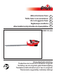 PL b) Używając przycinarki do żywopłotów noś rękawice robocze, okulary ochronne, twarde obuwie i długie spodnie. c) Urządzenie jest przeznaczone do przycinania żywopłotów. Nie przecinaj urządzeniem gałęzi, twardego drewna ani innych przedmiotów. d) Nie próbuj uwolnić zablokowanego/zakleszczonego noża, zanim nie wyłączysz urządzenia. e) Przed rozpoczęciem pracy sprawdź, czy w żywopłocie nie są ukryte przedmioty, np. druty itd. Zawsze trzymaj urządzenie tak, by jedna ręka mocno obejmowała uchwyt.