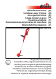 DE Allgemeine Beschreibung Lieferumfang Packen Sie das Gerät aus und kontrollieren Sie, ob es vollständig ist: - Akku-Rasentrimmer - Schneidscheibe mit 1 Schraube (Linksgewinde) - Schutzabdeckung mit drei Schrauben - Zusatzgriff - 20 Kunststoff-Messer - Ladegerät - Akku - Originalbetriebsanleitung Übersicht 1 2 3 4 5 6 7 8 9 10 11 12 13 14 15 16 17 18 19 20 Oberer Handgriff Ein-/Ausschalter Einschaltsperre Aufbewahrungsbox für Kunststoff-Messer (nicht sichtbar) Zusatzgriff Griffteil Riegel zur Verstellu