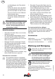 PL Nie używaj urządzenia bez osłony dłoni. Podczas prac, wykonywanych tym urządzeniem noś zawsze bezpieczną odzież roboczą i rękawice robocze. Zawsze przed rozpoczęciem użytkowania upewnij się, że urządzenie działa sprawnie. Włącznik/wyłącznik oraz wyłącznik bezpieczeństwa nie mogą się blokować. Po wyłączeniu przełącznika silnik powinien się zatrzymać. Gdyby któryś z przełączników był uszkodzony, wówczas nie wolno wykonywać żadnych prac przy pomocy tego urządzenia.