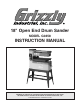 8" Open End Drum Sander MODEL G0458 INSTRUCTION MANUAL COPYRIGHT © AUGUST, 2005 BY GRIZZLY INDUSTRIAL, INC. REVISED DECEMBER, 2007 (BL) WARNING: NO PORTION OF THIS MANUAL MAY BE REPRODUCED IN ANY SHAPE OR FORM WITHOUT THE WRITTEN APPROVAL OF GRIZZLY INDUSTRIAL, INC.