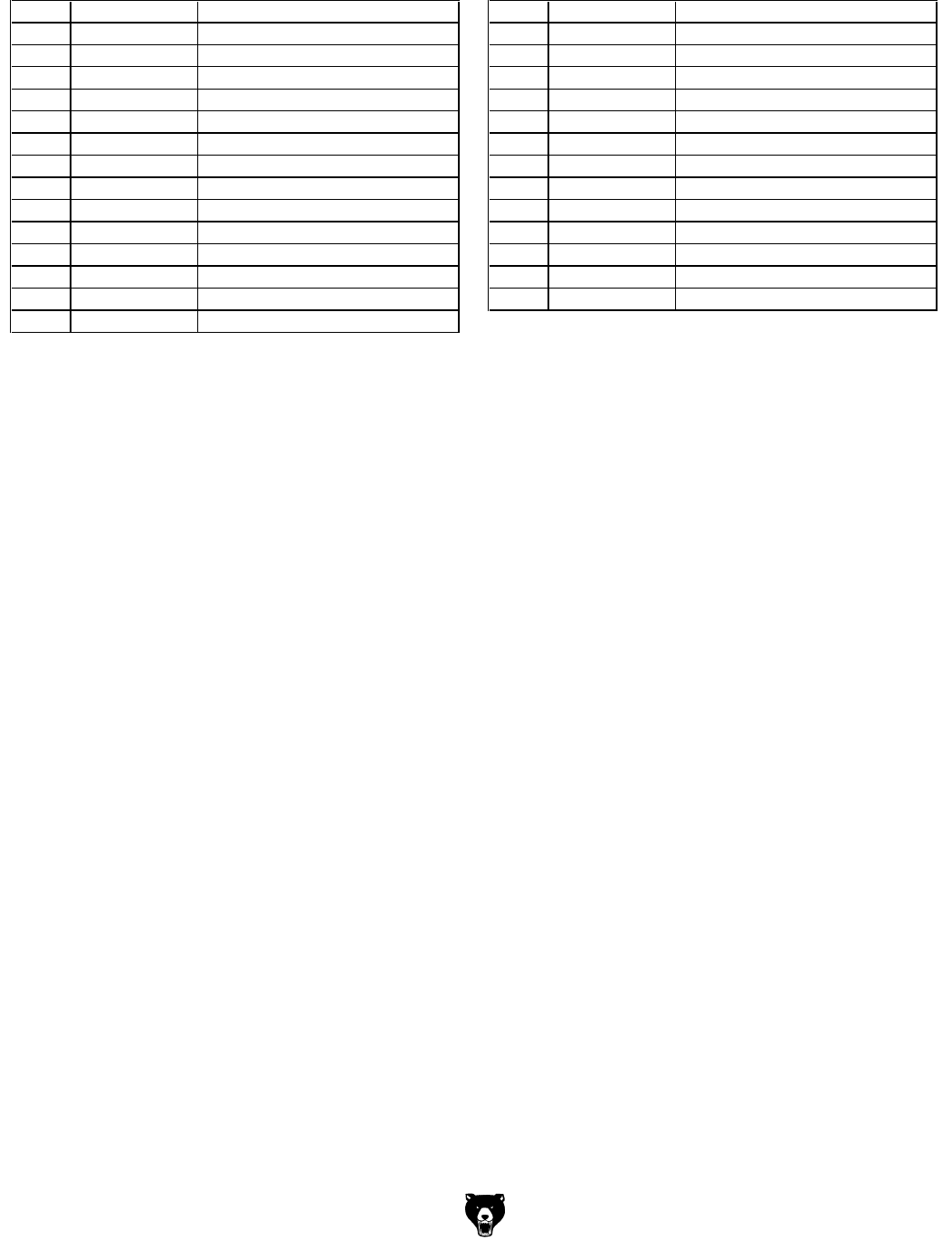 210 PLABEL-27 LABEL (CONVERSION CHART) 219 G8589 GRIZZLY LOGO PLATE