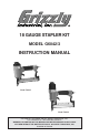 8 GAUGE STAPLER KIT MODEL G6042/3 INSTRUCTION MANUAL Model G6042 Model G6043 COPYRIGHT © OCTOBER, 2001 BY GRIZZLY INDUSTRIAL, INC. 1821 VALENCIA ST., BELLINGHAM, WA 98227 WARNING: NO PORTION OF THIS MANUAL MAY BE REPRODUCED IN ANY SHAPE OR FORM WITHOUT THE WRITTEN APPROVAL OF GRIZZLY INDUSTRIAL, INC.