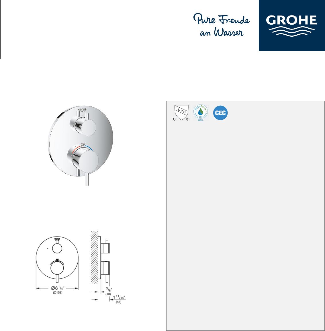 • GROHE SafeStop Plus temperature limiter at 115° F/46° C