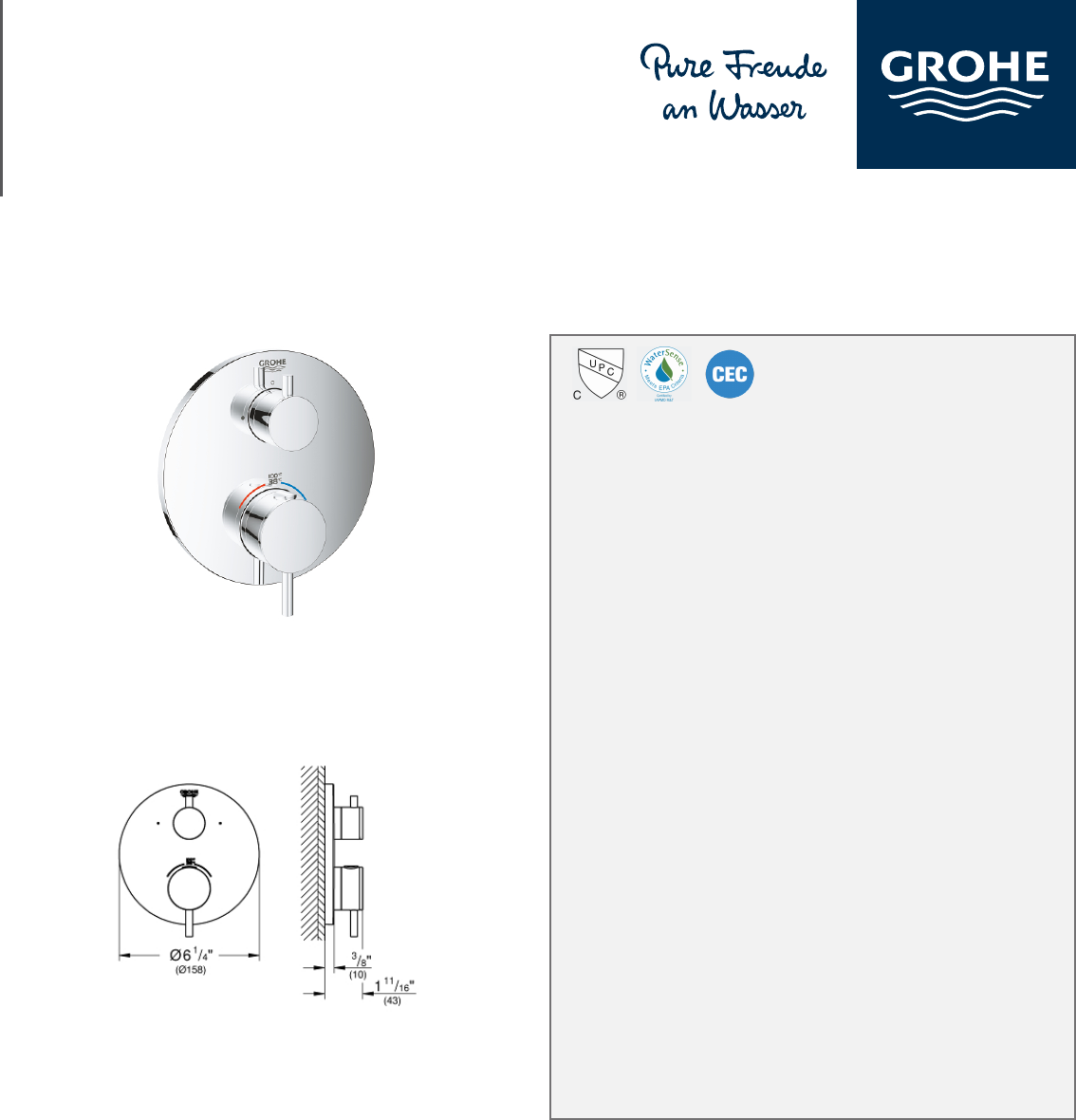 • GROHE AquaDimmer, integrated shut off/diverter valve