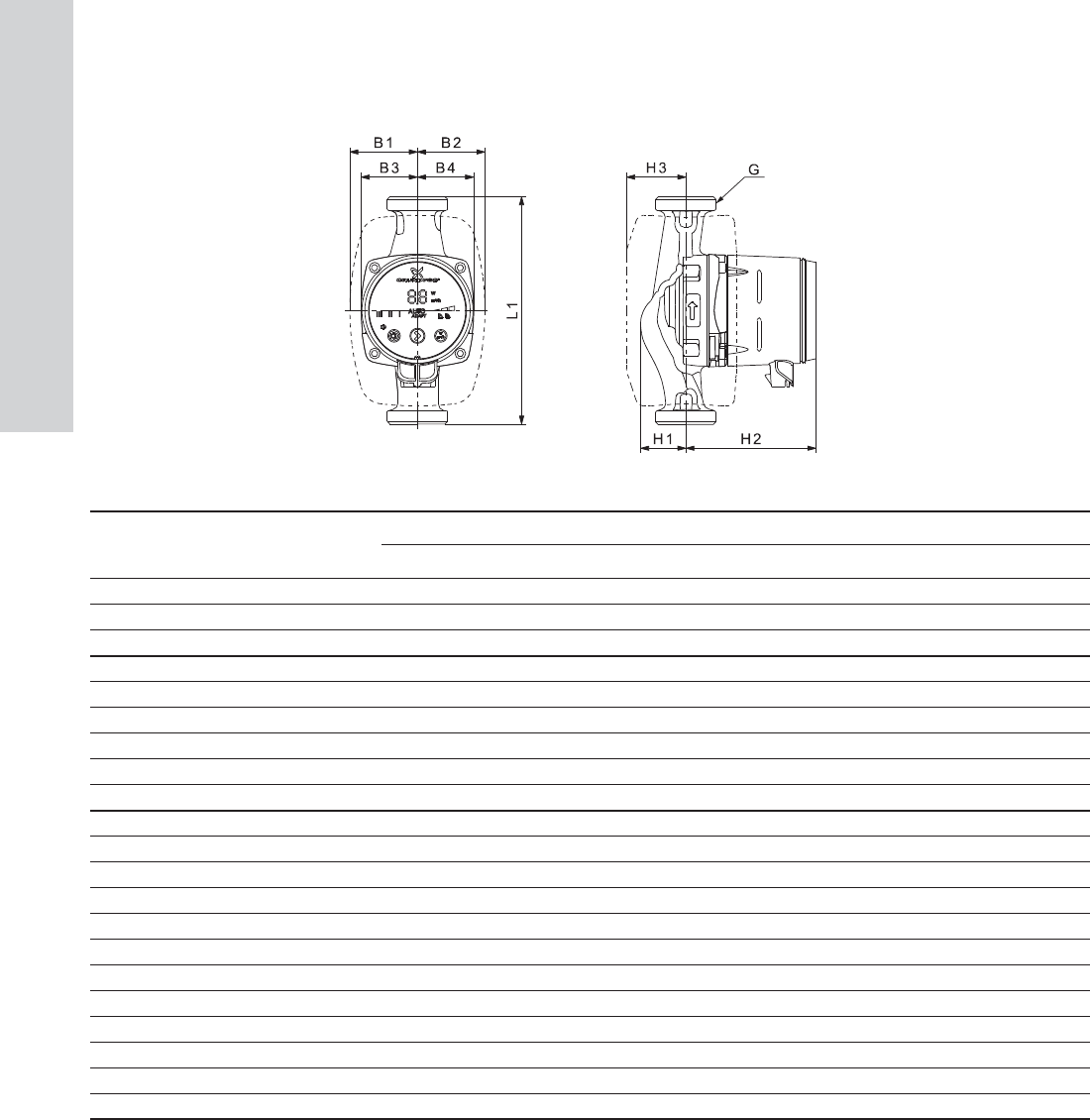 14.2 Einbaumaße der GRUNDFOS ALPHA2 XX-40, XX-50, XX-60
