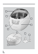 FIGYELEM EGY PILLANATRA ___________________________ Kezelő elemek és tartozékok Milyen tárgyakat szabad tisztítani? Lásd ehhez a 2. oldal ábráját. A Átlátszó fedél Szemüvegek B Nemesacél víztartály (550 ml) C Hálózati kábel D Be-kikapcsoló gomb E Üzem kijelző F Készülékház Tartozékok G Kivehető tartó H Óra tartó I CD tartó J CD távtartó 8 MAGYAR A szemüvegeket mindig az üvegüket felfelé fordítva tegye a kivehető G tartóba.