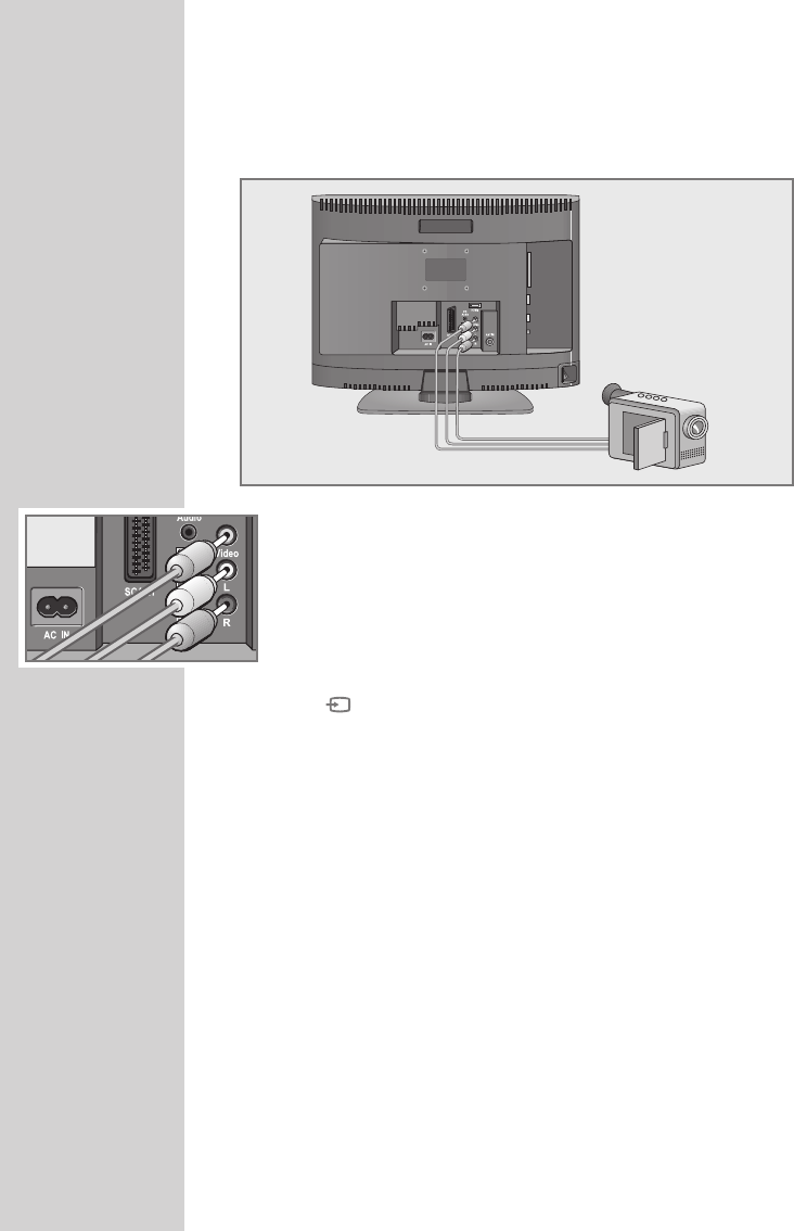 Gelbe Buchse »« des Fernsehgerätes und die Video-