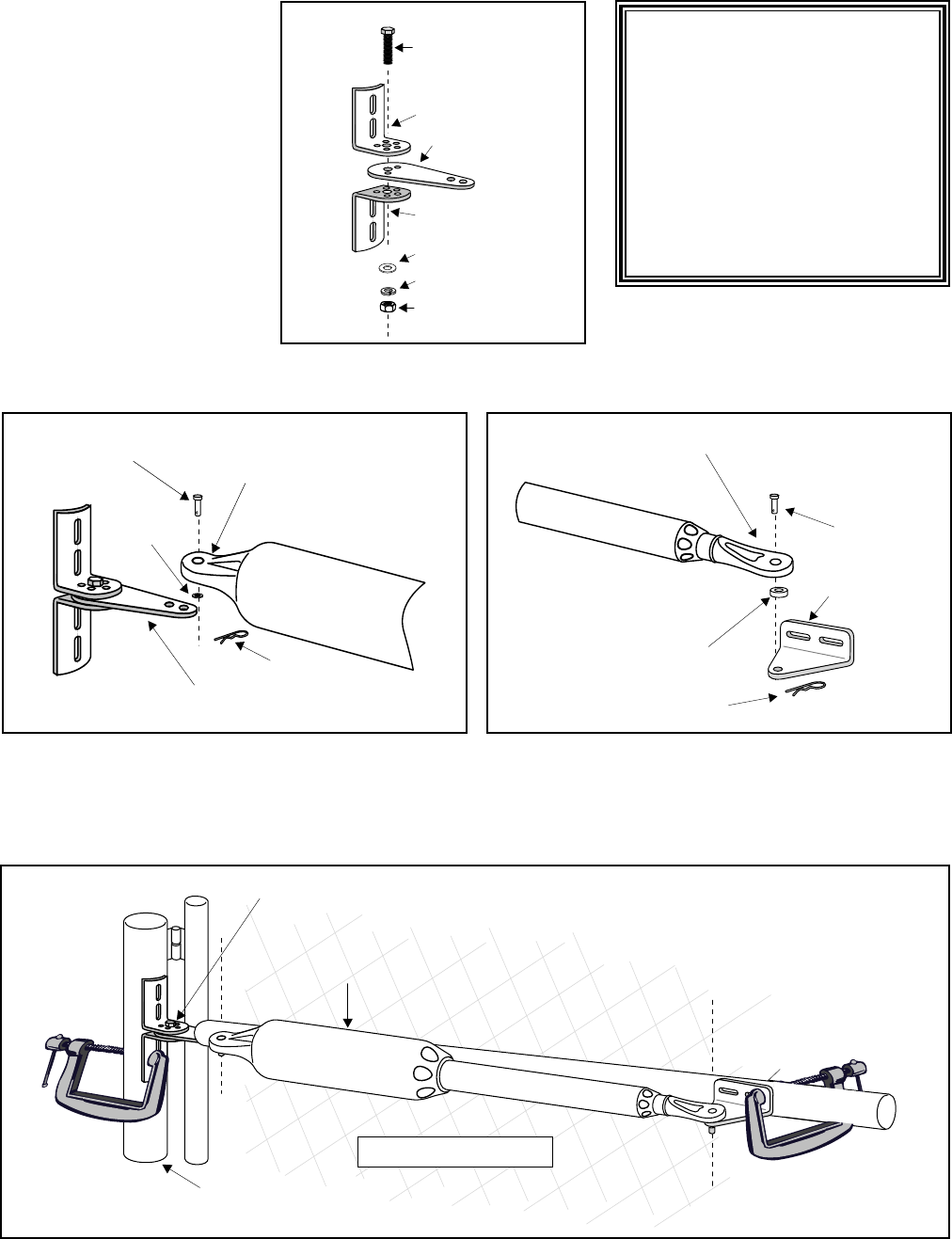 post bracket assembly and gate bracket until the operator is level. While holding the operator level, use C-clamps to