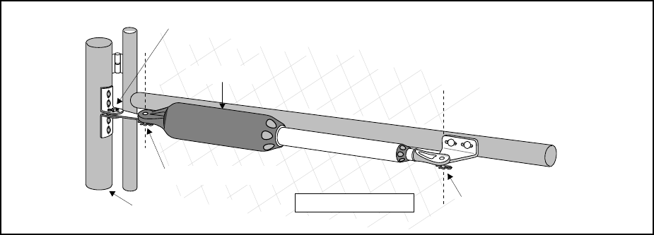 Attach the operator to the securely bolted post bracket assembly and gate bracket using clevis pins, bushings, and hairpin