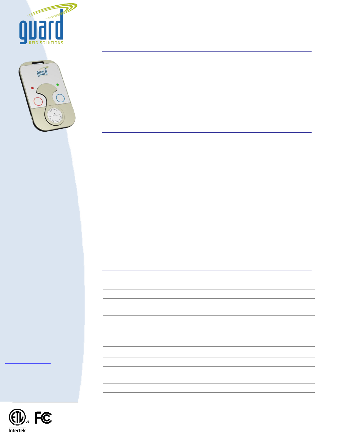 02-00038-107 Specifications Subject to Change Without Notice. © 2011 Guard RFID Solutions, Inc.