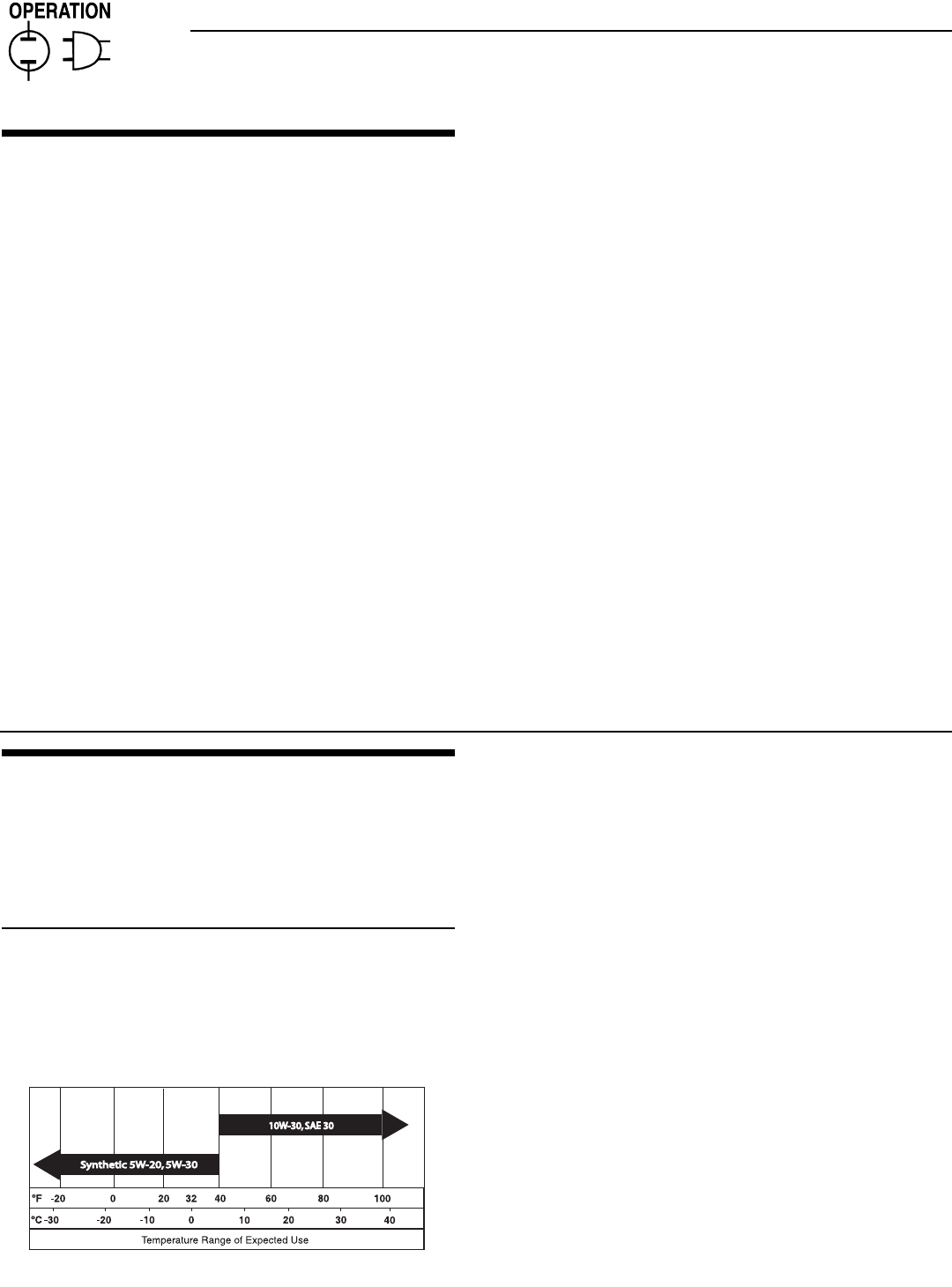 • Above 40°F, use SAE 10W-30 or SAE 30.