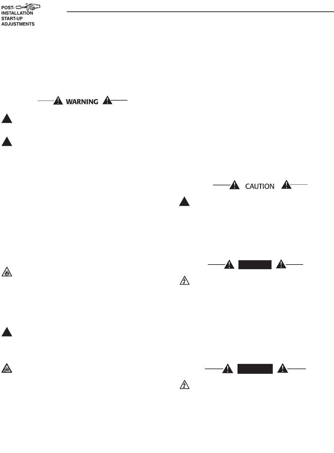 Section 2 — Post Installation Start-up and Adjustments